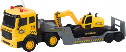 Ovaj detaljno izrađen građevinski set spaja veliki tegljač s niskopodnom prikolicom i realističan gusjenični bager. Zahvaljujući Friction Power pogonu dovoljno je vozilo potisnuti i samo će se pokrenuti, dok pozadinsko osvjetljenje i zvukovi motora, trube i vožnje unatrag dodaju igri autentičnost. Spustiva stražnja rampa na prikolici omogućuje lako ukrcavanje i iskrcavanje strojeva.