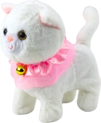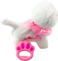 Preslatko interaktivno bijelo mačiće od mekog pliša s ružičastim volančićem i zvončićem na vratu razveselit će svako dijete. Zahvaljujući povodcu s gumbom, nakon pritiska se počne kretati i ispušta zvukove mijaukanja. Igračka potiče empatiju, brigu i kreativnost te donosi sate radosne zabave.