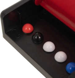 Zahvaljujući kompaktnim dimenzijama i trajnim materijalima (ABS, PP) igra je idealna za dom i putovanja. Šareni čepići vizualno su privlačni i otporni na oštećenja. Jednostavna pravila omogućuju brz početak i zanimljivo nadmetanje za djecu i odrasle.