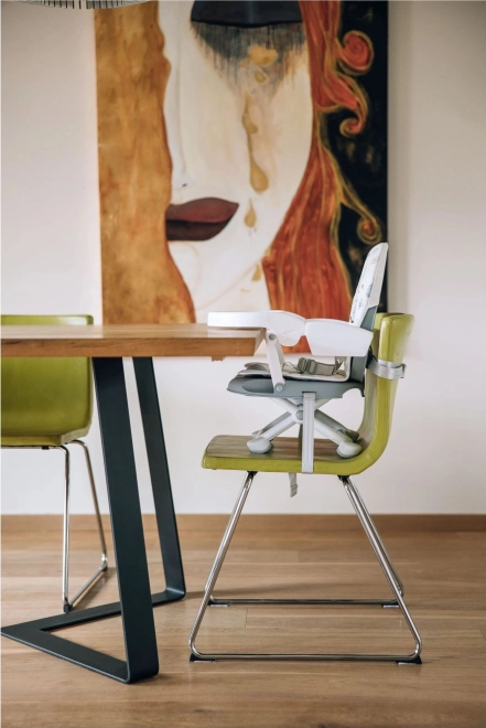 Roditelji će cijeniti 4-stupanjsko visinsko podešavanje za idealno poravnanje sa stolom, široko sjedalo 36 × 30 cm za udobnost djeteta i 3-točkaste pojaseve za sigurno vezanje. Odvojiva tacna olakšava hranjenje i održavanje. Proizvod ispunjava europske sigurnosne norme EN 14988 i EN 16120.