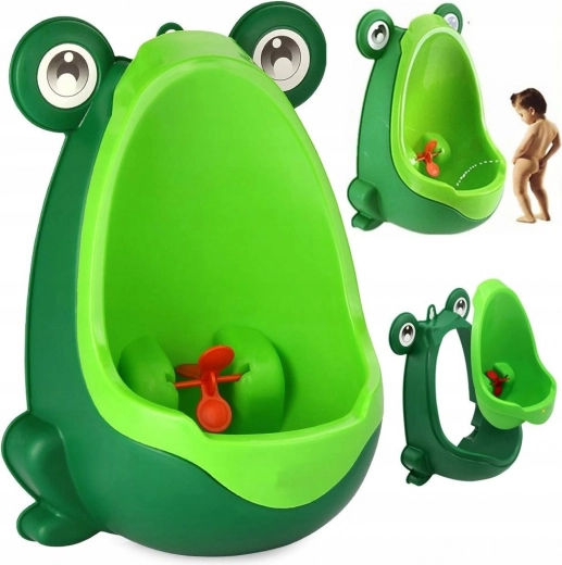 Dječji pisoar FreeON Žabica zeleni s vakuumskim čašicama, podesivom visinom i okretanom metom. Lako čišćenje, izdržljiva plastika, idealno za trening dječaka.