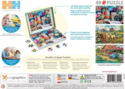 Praktična kutija s preklopnim poklopcem služi i kao podloga – slaganjem izravno u kutiji. Na unutarnjoj strani poklopca nalazi se pregledan prikaz motiva za lakšu orijentaciju. Proizvodnja je prijateljska prema prirodi: koristi se reciklirani karton i biljna tinta. Puzzle se isporučuju u sklopljenom stanju radi jednostavnog početka aktivnosti.