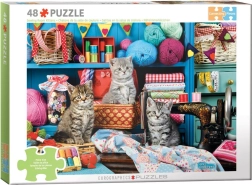 Puzzle EUROGRAPHICS Connecting Pieces osmišljene su kao smisleno zadovoljstvo i korisno pomagalo za mentalni trening. Zahvaljujući većim dijelovima ugodno se slažu, smanjuju stres i poboljšavaju koncentraciju. Motiv „Mačje pletenje” razveselit će svakog ljubitelja mačaka i mirnih trenutaka.