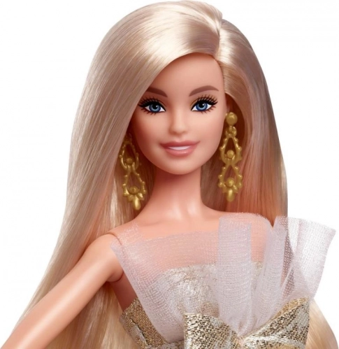 Efektna duga plava kosa poziva na češljanje i kreativnost, dok svjetlucavi detalji haljine i zlatne naušnice naglašavaju svečani izgled. Ova Barbie idealna je kao božićni poklon, a razveselit će i strastvene kolekcionare koji će cijeniti njezin razrađeni dizajn i bezvremenski stil.