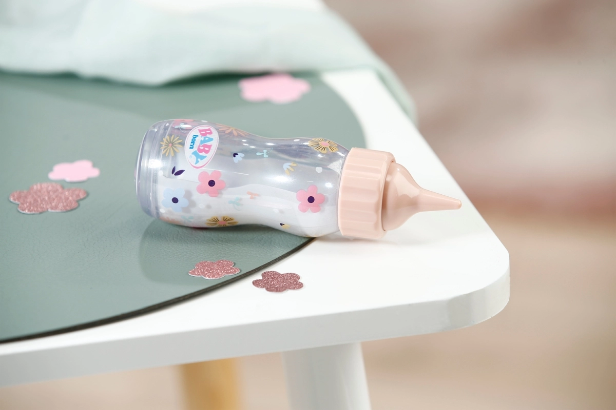 Čarobna bočica BABY born iz linije Lunch Time donosi jednostavan i dojmljiv efekt nestajućeg napitka, zahvaljujući kojem djeca doživljavaju autentično hranjenje lutke bez nereda. Dovoljno je prisloniti bočicu uz usta lutke i promatrati kako sadržaj nestaje – nakon vraćanja u uspravan položaj bočica je ponovno puna.