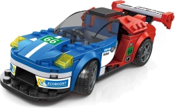 Ova tehnička građevna set-konstrukcija uvodi male entuzijaste u svijet brzih automobila i mehanike. Od dijelova ćete lako sastaviti elegantan trkaći model u atraktivnoj plavo‑crvenoj kombinaciji boja. Stabilna konstrukcija i dekorativne naljepnice omogućuju djeci prilagoditi auto prema vlastitoj mašti.