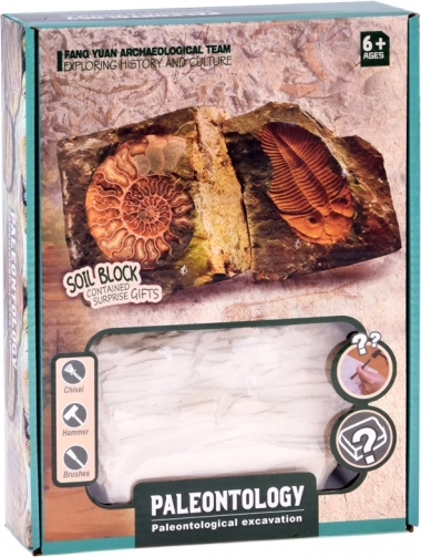 Pretvorite stol u malo arheološko nalazište. U svakom bloku krije se nasumično odabrana skamenjena lubanja – to može biti mamut, sabljozubi tigar, krokodil, dlakavi nosorog, afrički bizon, orao, ovca s dugim rogovima ili čak čovjek-majmun. Zahvaljujući dletima, čekiću i kistu djeca korak po korak otkrivaju pojedine dijelove, očiste ih i dobiju jedinstveni model.