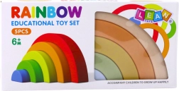 Ovaj pastelni dugin set od kvalitetne gume oduševit će svako dijete i roditelja. Pojedinačni lukovi različitih veličina mogu se slagati, slagati u slojeve i povezivati u maštovite oblike. Mekani materijal ugodan je na dodir i nježan prema malim ručicama, stoga je idealan za prve građevne igre.