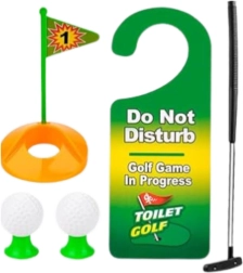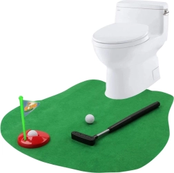 Toaletni golf set pretvara svaki odlazak na WC u kratku zabavu i trening mirne ruke. Podlog realistično podsjeća na green, sastavljanje traje svega par sekundi, a nakon igre ga jednostavno smotate i spremite. Odlična ideja za rođendane, Božić ili kao šaljivi poklon.
