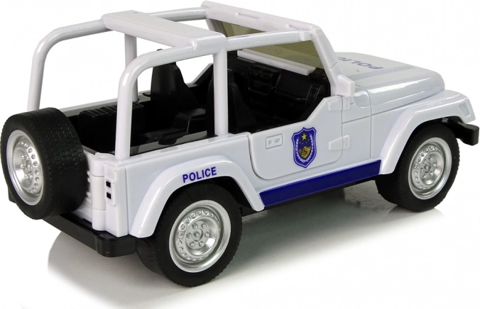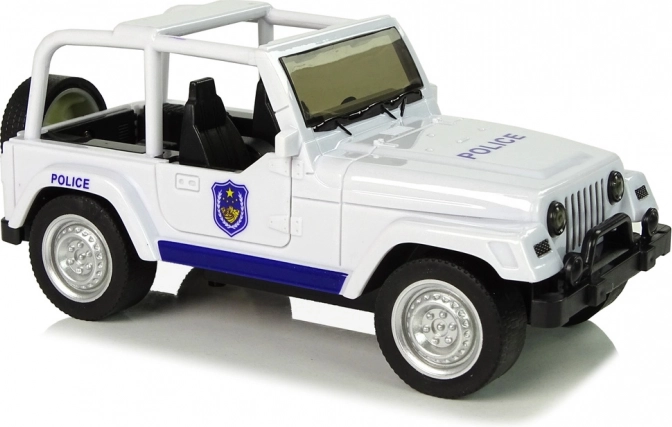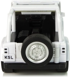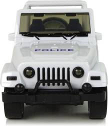 Postanite čuvar zakona i krenite u akciju! Bijeli terenski policijski auto savršen je izbor za djecu koja vole akciju i avanturu. Kompaktne dimenzije pristaju dječjoj ruci, dok gumene gume i pull-back pogon osiguravaju zabodnu vožnju na kratke udaljenosti. Auto ima otvarajuća prednja vrata, detaljnu unutrašnjost i plave policijske elemente s natpisom POLICE.