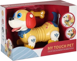 Preslatki interaktivni psić s magnetskom kosti reagira na dodir, govori engleski, svira melodije i svijetli očima. Zahvaljujući bočnom kretanju i jednostavnom upravljanju razvija finu motoriku i senzorne vještine. U kompletu su magnetska kost, svjetlosni efekti, glazba i dodirne funkcije – sjajna zabava za djecu od 3 godine.