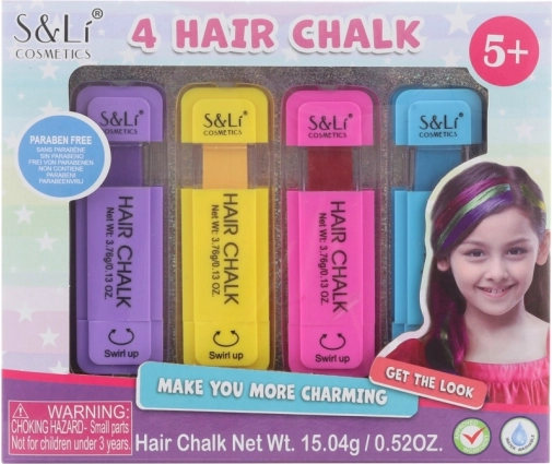 Isprobajte jednostavno i zabavno bojanje sa setom krede za kosu u 4 živopisne nijanse. Idealno za zabave, fotografiranje i svakodnevne eksperimente. Boje se lako nanose i mogu se brzo isprati vodom i šamponom. Sigurno za djecu od 5 godina, praktično pakirano u kutijici.