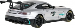 Model Rastar vjerno prati linije trkaćeg Mercedes‑AMG GT2 uključujući detaljnu unutrašnjost i aerodinamičke elemente. Kvalitetna ABS plastika i pomna izrada osiguravaju dugi vijek trajanja, dok neovisno oslanjanje i mehanička korekcija smjera doprinose preciznoj vožnji na različitim podlogama.