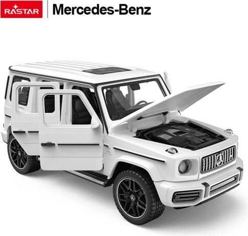 Detaljno izrađen metalni model u mjerilu 1:32 predstavlja ikonski MERCEDES‑BENZ AMG G63 brenda Rastar. Nudi metalnu karoseriju, gumene gume, funkcionalna svjetla i zvukove te otvarajući poklopac motora i bočna vrata. U kompletu je napajanje LR44 i certifikati CE/EN71/RoHS.