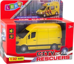 Realistični žuti kombi u mjerilu 1:32 kombinira metalne dijelove i kvalitetnu plastiku za veću izdržljivost i atraktivan izgled. Nudi mehanizam na navlačenje (pull back), otvoriva vrata i svjetlosne i zvučne efekte, pa je idealan za igru i kao kolekcionarski model.