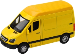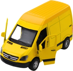 Ovaj detaljno izrađen kombi vjerno oponaša klasično dostavno vozilo koje se koristi u transportu i logistici. Metalna karoserija u kombinaciji s čvrstom plastikom osigurava trajnost, sigurnost i elegantan izgled. Minimalistički žuti dizajn istaknut će se i u dječjoj garaži i u vitrini kolekcionara.