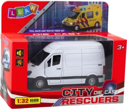 Realistični metalni kombi u mjerilu 1:32 oduševit će male i velike ljubitelje. Nudi mehanizam na navijanje (pull back), otvarajuća vrata te svjetlosne i zvučne efekte. Kvalitetna kombinacija metala i plastike jamči izdržljivost, a bijeli minimalistički dizajn uklapa se u svaku kolekciju modela.