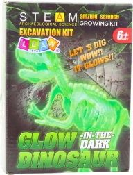 Ovaj arheološki set idealan je izbor za djecu koja žele doživjeti prave iskope poput paleontologa. U gipsanoj kocki nalazi se svjetleći kostur dinosaura koji se može pažljivo otkriti, a zatim sastaviti u cjelovit model. Svjetleći efekt u mraku dodatno povećava atraktivnost igre i potiče maštu.