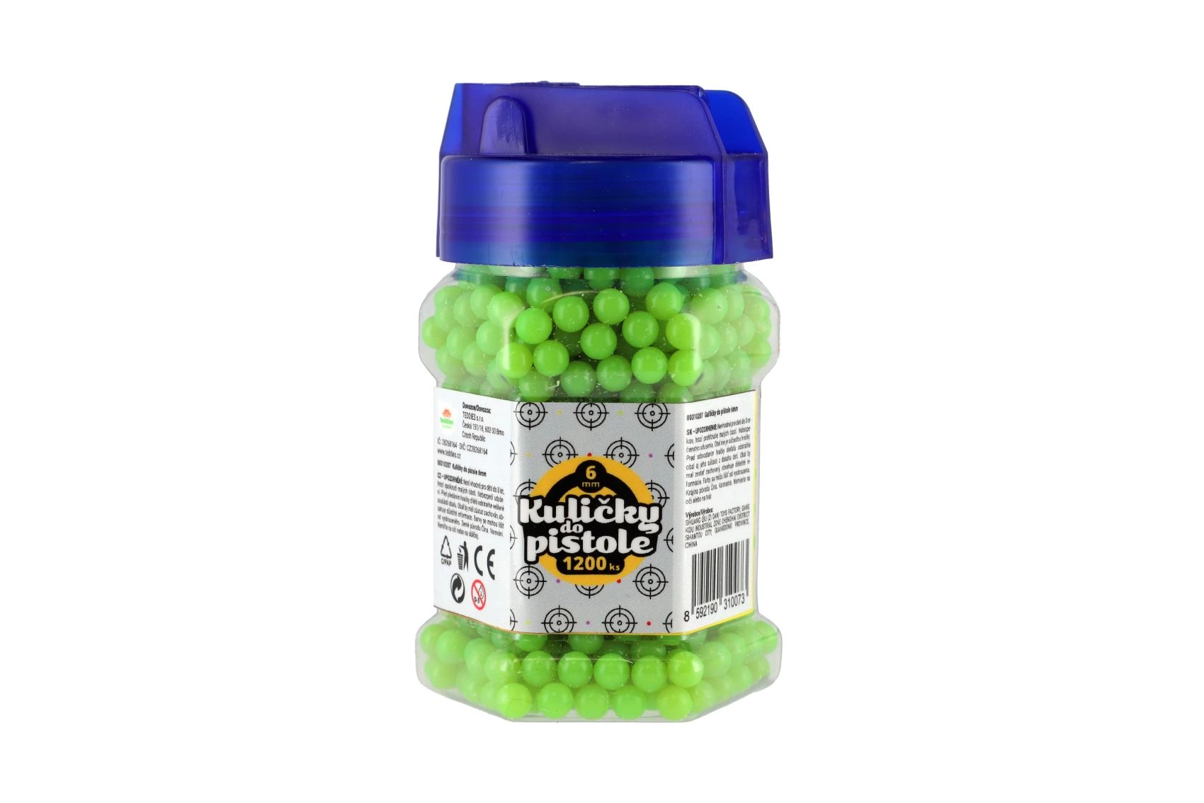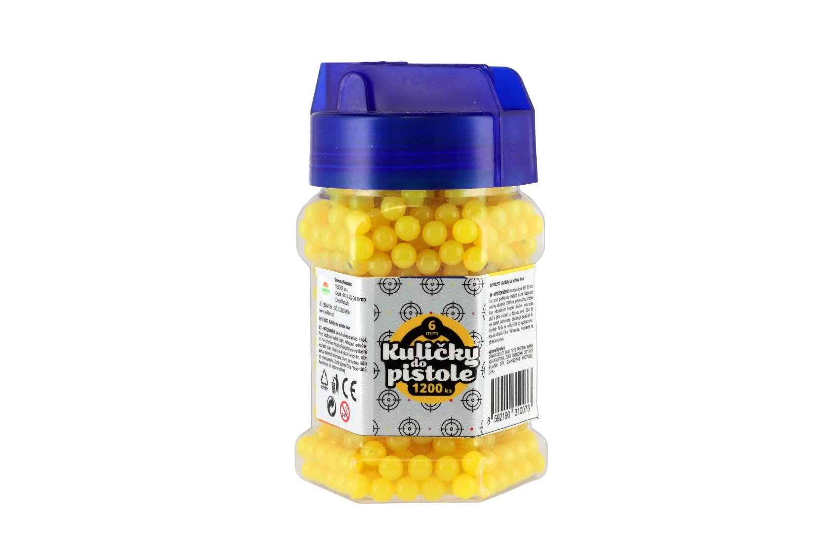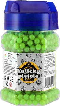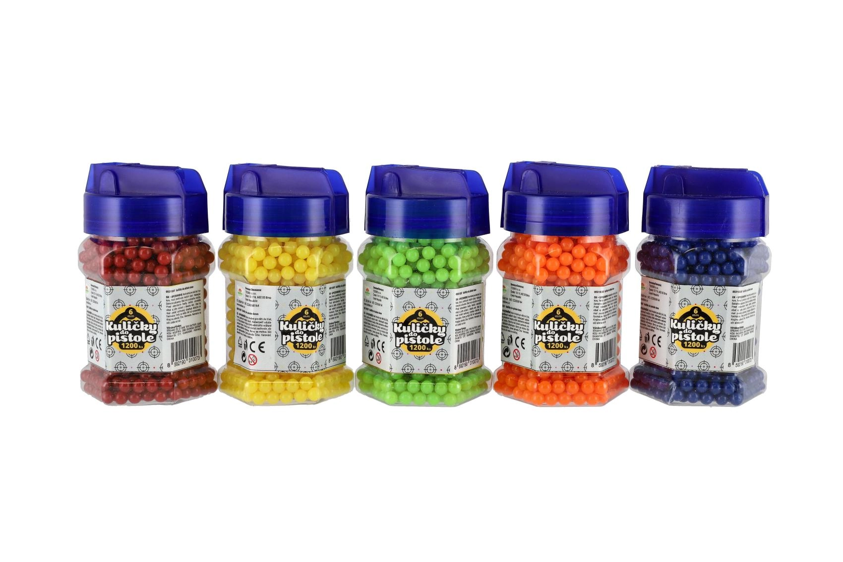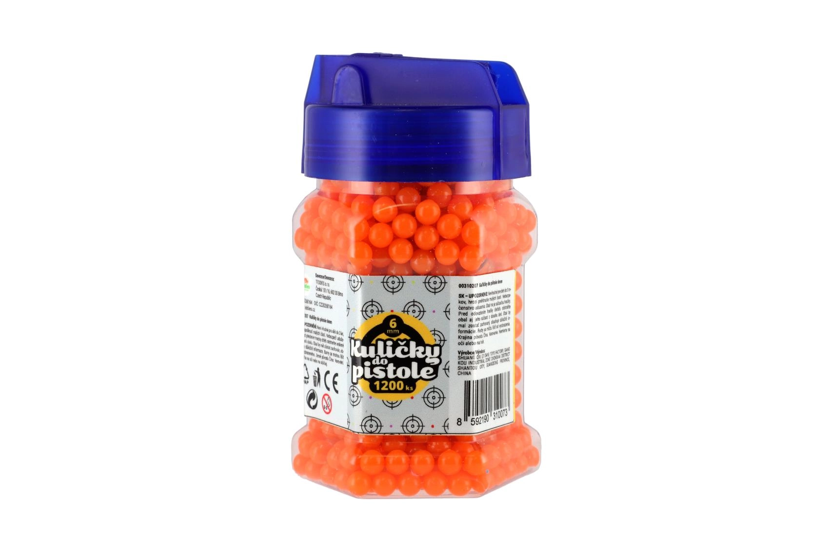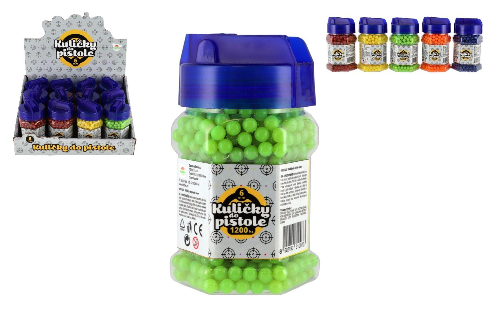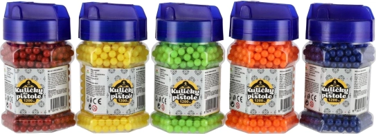 Zamjenske plastične kuglice promjera 6 mm za dječje pištolje – idealne za zabavno gađanje mete. Pakiranje sadrži 1200 laganih kuglica u praktičnoj bočici s čepom za jednostavno doziranje i skladištenje. Kuglice su dostupne u mješavini boja i prikladne su za uobičajene dječje igračke pištolje.