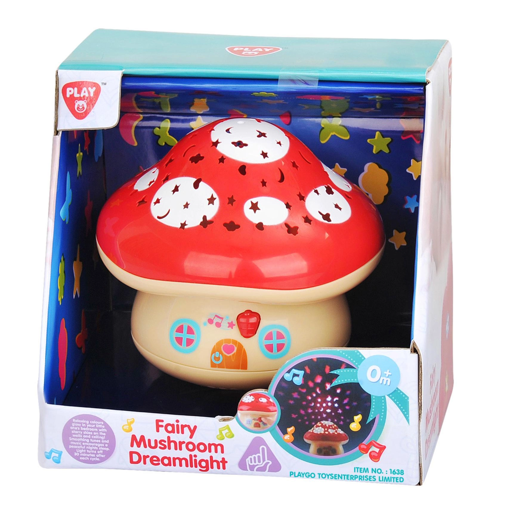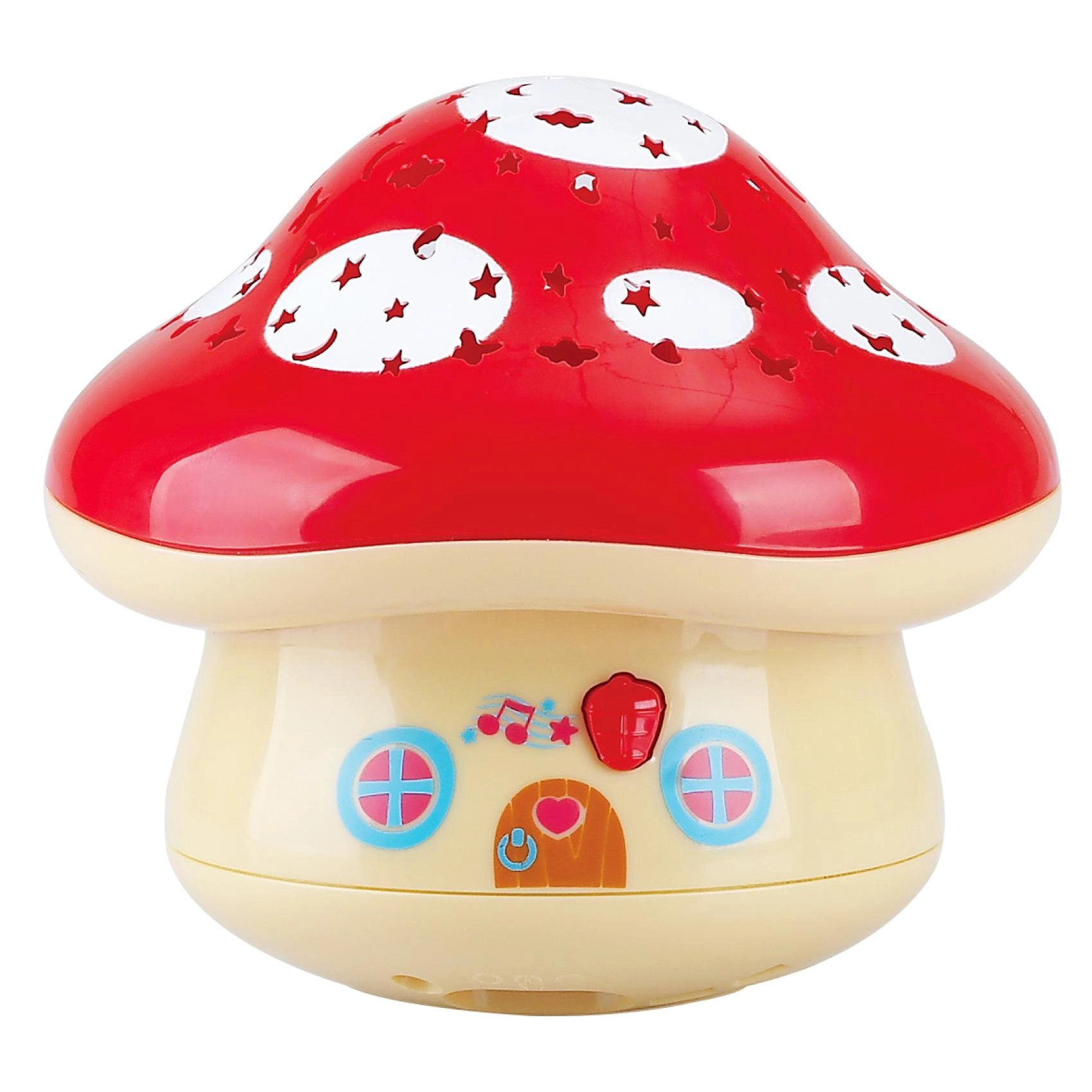 Preslatka projekcijska gljivica projicira po zidovima i stropu šarene oblike i zvjezdice, popraćene umirujućim melodijama za mirno uspavljivanje. Automatsko isključivanje nakon 30 minuta štedi bateriju, a tiha projekcija i nježno svjetlo stvaraju ugodnu atmosferu u dječjoj sobi. Idealno od rođenja (0m+).