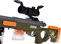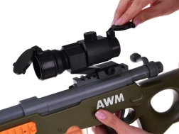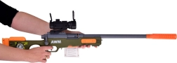 Velika dječja snajperska puška na pjenaste metke donosi dojmljivo realističan doživljaj. Nakon svakog repetiranja iz komore ispada „čahura“ kao kod prave puške, što igri daje autentičnost. Puška je u potpunosti od plastike, pa je vrlo lagana i dobro leži u ruci, zahvaljujući čemu se djeca mogu zabavljati satima.
