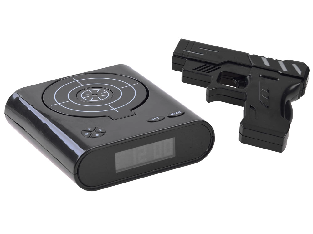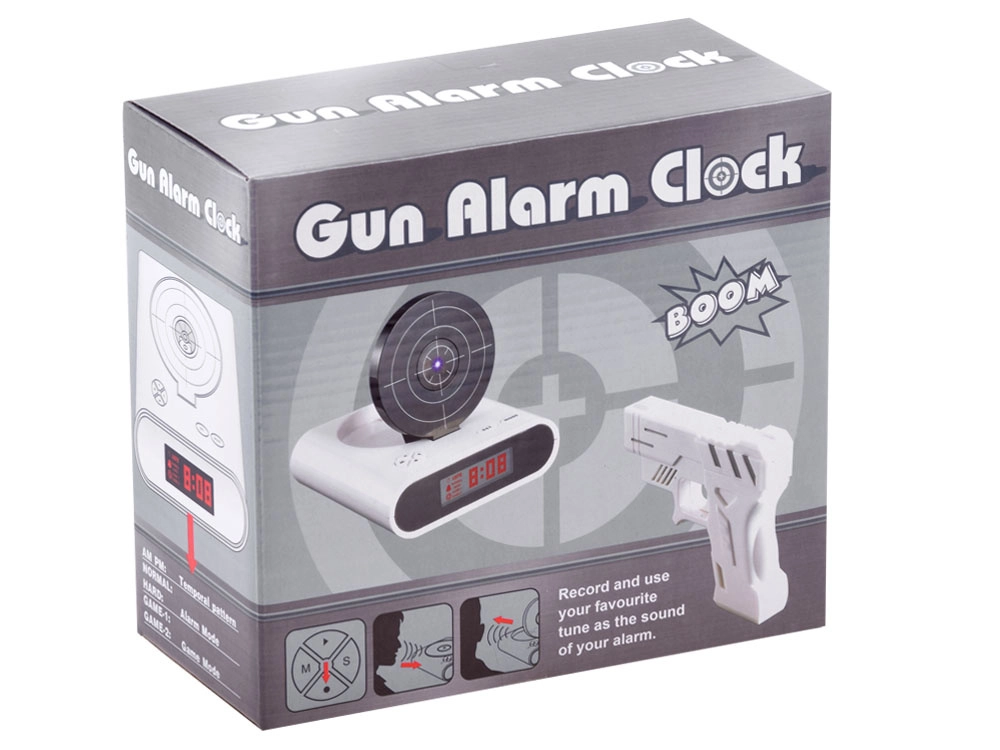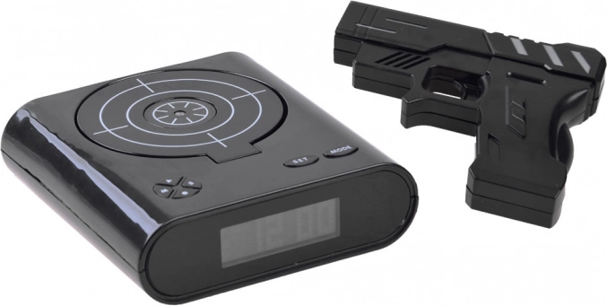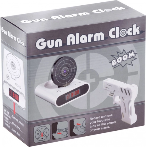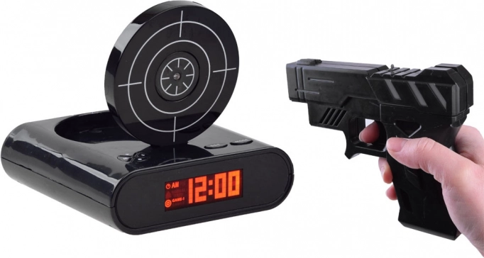 Uljepšajte jutarnje ustajanje uz originalno rješenje: budilicu s pištoljem i metom. Nakon zvonjenja dovoljno je naciljati i “ispaliti” u metu kako bi se alarm isključio. Nudi dvije igraće načine, mogućnost snimanja vlastitog alarma i čitljiv LCD. Može se napajati AA baterijama ili putem micro USB-a (kabel nije uključen). Sjajna zabava i funkcionalno buđenje u jednom.