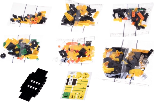 Tehnički set sportskog automobila s 368 dijelova u žuto‑zelenoj izvedbi. Aerodinamičan dizajn, naljepnice, srednja težina, preporučeno od 14+.