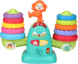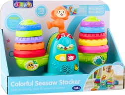 Interaktivna vaga u obliku simpatičnog lavića uči djecu principima vaganja i ravnoteže. Krakovi se njišu ovisno o broju i težini postavljenih prstenova, što prirodno razvija logičko razmišljanje i osnovne matematičke pojmove. Šareni dijelovi različitih veličina potiču razvrstavanje, uspoređivanje i slaganje.