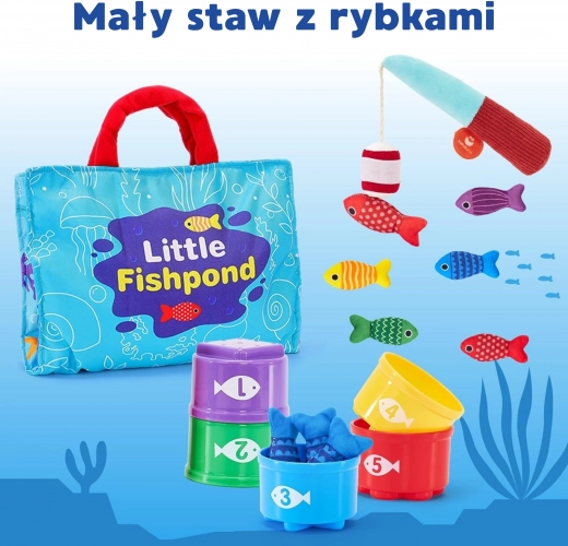 WOOPIE igraći set za male ribare je mekana, sigurna i privlačna igračka za djecu od 6 mjeseci. Šarene plišane ribice, lagani štap s mamacem na čičak, čašice–sorteri s brojevima i sklopiva torba–podloga pretvaraju svaki kutak u mini ribnjak. Dijete lovi ribice, sortira ih u čašice i uči boje, brojanje i uzorke, dok razvija finu motoriku i koordinaciju.