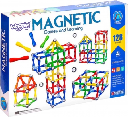Magnetska konstrukcijska igračka Woopie 3D, 128 dijelova. Snažni magneti, sigurni materijali, 2D/3D gradnje, razvoj kreativnosti i logike. Za djecu od 3 godine.