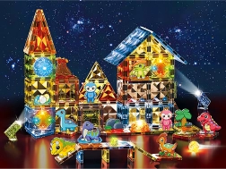 Stvorite zajedno jedinstveni prapovijesni svijet. Magnetni dijelovi lako se spajaju, čvrsto drže i efektno sjaje u mraku, što gradnji daje novu dimenziju. Djeca mogu izgraditi ograde, vulkane i dinosaurova skloništa te pritom prirodno razvijati prostornu maštu i logičko razmišljanje.