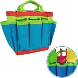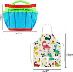 Praktična pregača s motivom dinosaura i torba za alat pomažu održati red, dok posudice i šarene oznake za biljke uče djecu razlikovati i pratiti rast. Set je odličan za igru u vrtu, na balkonu, u pješčaniku i uz vodu.