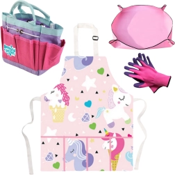 Šareni set malog vrtlara s motivom jednoroga brenda Woopie izvrstan je način kako djecu motivirati na kreativnu igru na otvorenom. Zahvaljujući sigurnim i laganim alatima djeca mogu sADITI biljke, brinuti o vlastitom vrtu i otkrivati tajne prirode. U kompletu je i praktična pregača sa slatkim uzorkom koja štiti odjeću i potiče igru uloga.