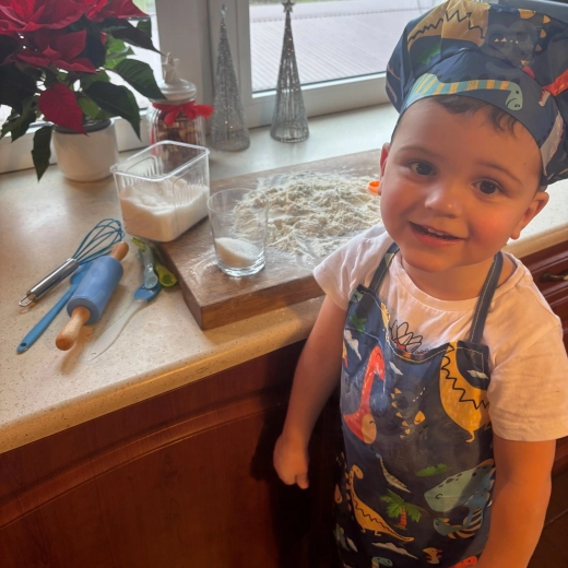 U pakiranju se nalazi sve za valjanje, miješanje, mjerenje i ukrašavanje – od valjka i pjenjače do silikonskih kalupa i vrećica za ukrašavanje. Pregaču i kapu moguće je prati u perilici rublja, pa zabava može trajati bez brige o neredu.