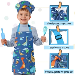 Razvijte dječju maštu u kuhinji s preslatkim dino motivom. Set je izrađen od kvalitetnih i za hranu sigurnih materijala, silikonski dijelovi se lako čiste, a pregaču i kapu moguće je prati u perilici. Zahvaljujući podesivom remenu i elastičnoj gumici savršeno pristaje djeci različite dobi.