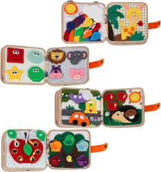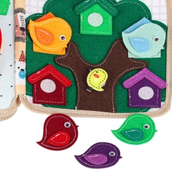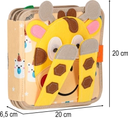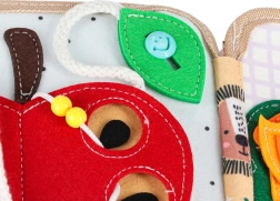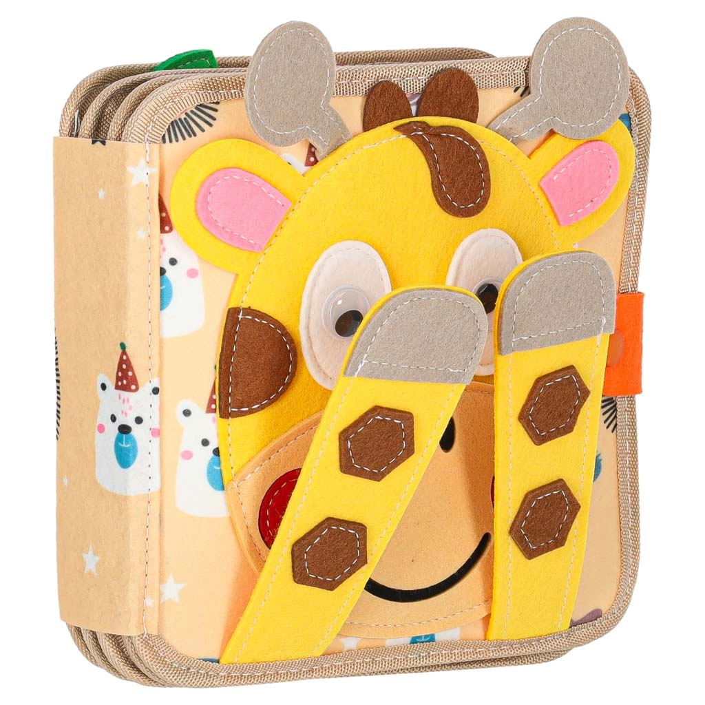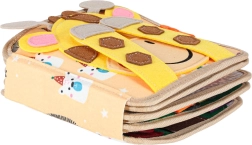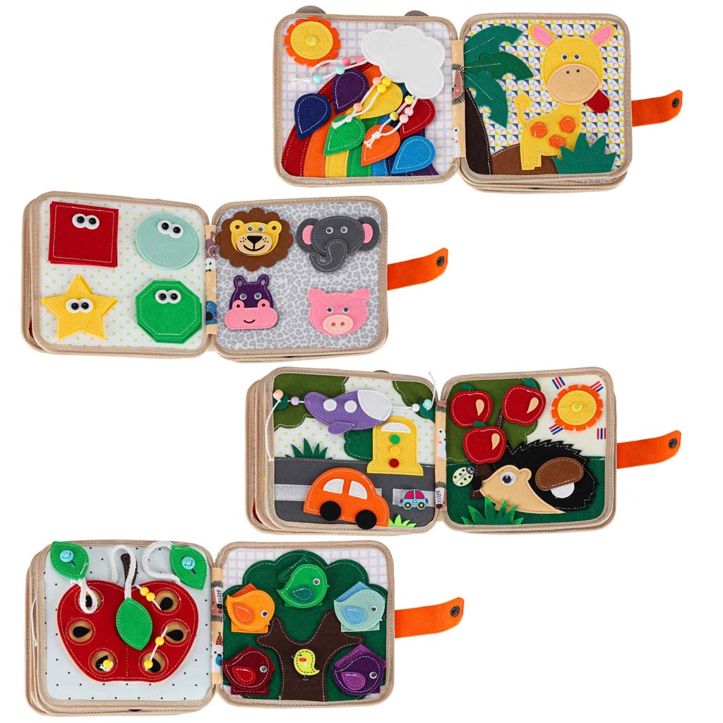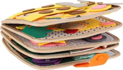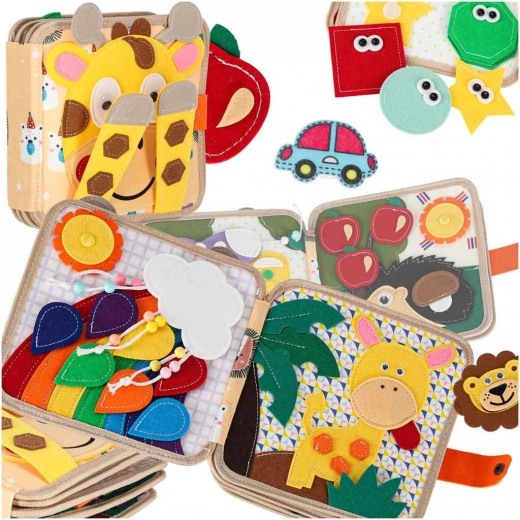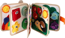 Ova osjetilna i edukativna knjižica od mekog filca donosi djeci zabavan način učenja. Odvojivi i pomični elementi na čičak ili drukere potiču interakciju, vježbaju koordinaciju oko–ruka i razvijaju finu motoriku. Zahvaljujući razigranim bojama i raznolikim motivima djeca uče prepoznavati boje, oblike, životinje i pojave u prirodi.