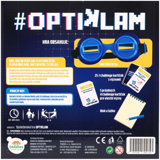 Igra OPTIKLAM okrenut će vaše opažanje naglavačke – ono što je dolje bit će gore, a što je lijevo, iznenada izgleda desno. Zahvaljujući posebnim naočalama s preokrenutim vidom, uobičajene aktivnosti pretvaraju se u neočekivanu zabavu punu iznenađenja i kikotanja.