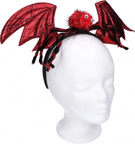 Karnevalska traka za kosu s ušima i paukom. Lagani i udobni dodatak za Noć vještica i maškare. 4 boje: crvena, narančasta, ljubičasta, crna.