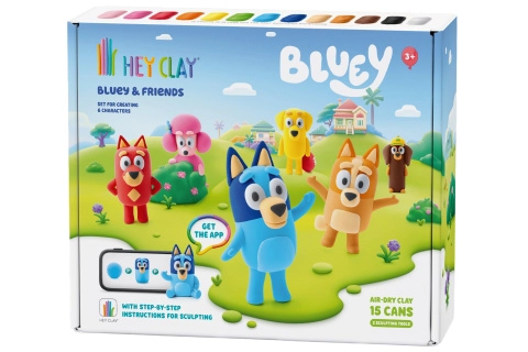 Set Hey Clay Bluey donosi djeci sate kreativne zabave. Zahvaljujući mekoj, dobro oblikovnoj masi i praktičnim alatima, modeliranje likova iz serije BLUEY je jednostavno i zabavno. Set potiče razvoj fine motorike, kreativnosti i strpljenja.