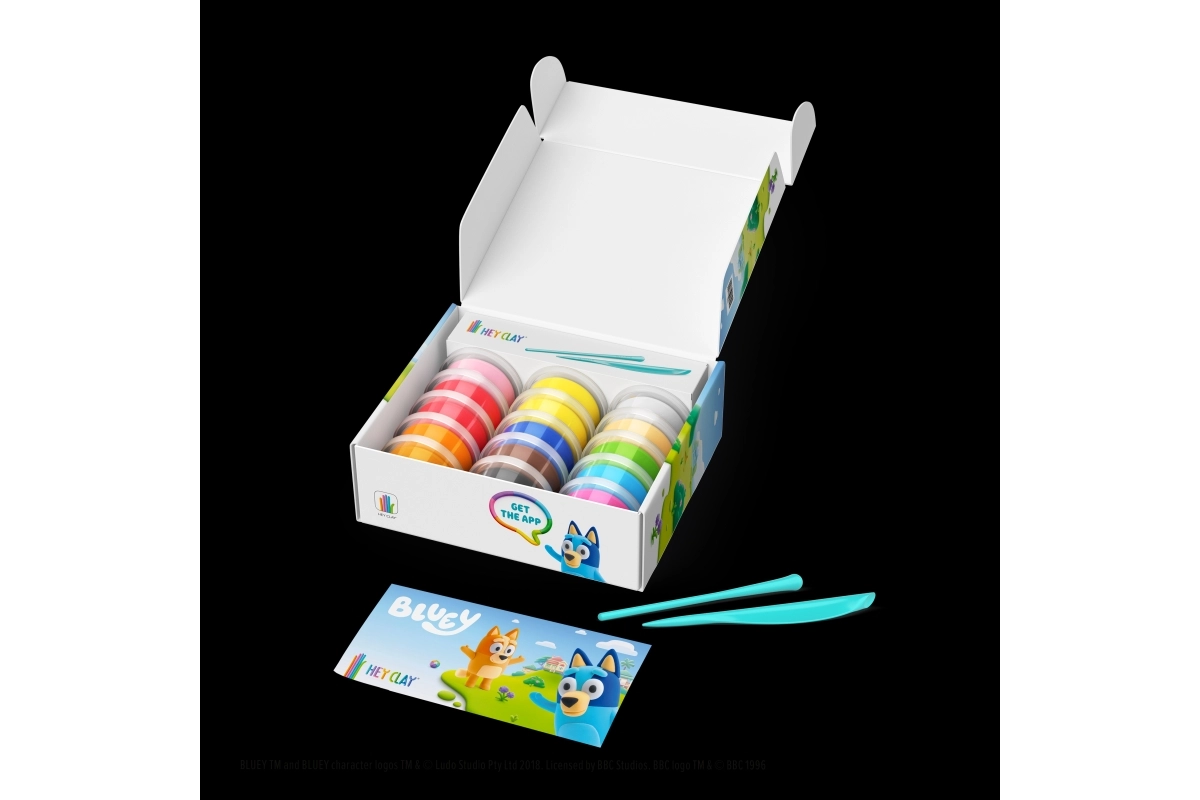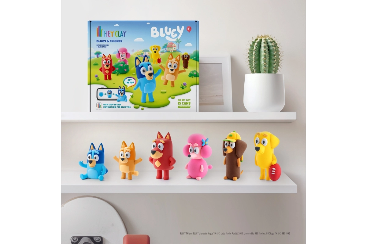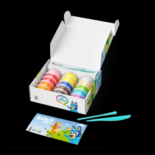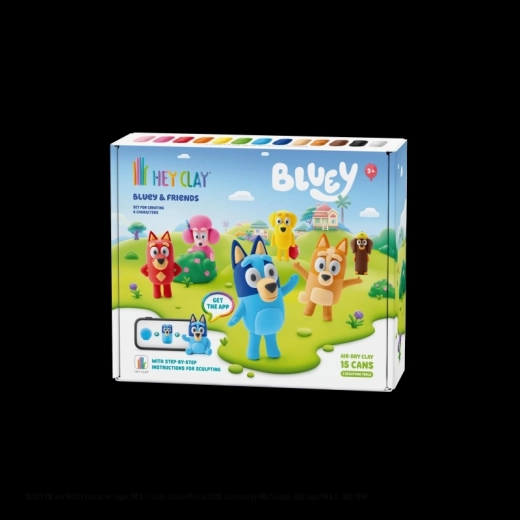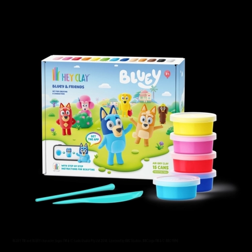Otkrijte kreativni svijet s modelirajućom masom HEY CLAY i setom Bluey i prijatelji. Izradite cijelu šestoricu omiljenih likova – Bluey, Bingo, Luckyja, Snickersa, Coco i Rustyja – uz pomoć šarene, lagane mase i interaktivnih uputa u aplikaciji. Gotove figurice nakon sušenja očvrsnu i odlične su za igru i sakupljanje.