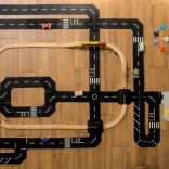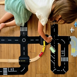 Ovaj veći proširivi set od Toddleroada donosi željeznički prijelaz koji omogućuje povezivanje cestovnih setova Grad ili Metropola s omiljenim drvenim tračnicama. Zahvaljujući kompatibilnosti s BRIO i MAXIM djeca lako prelaze autićem preko tračnica i proširuju svoje igraće scenarije. Obostrani dio s malim kružnim tokom i X raskrižjem dodaje nove smjerove i manevre, pa i manji setovi dobivaju nove mogućnosti.