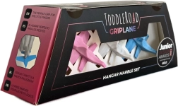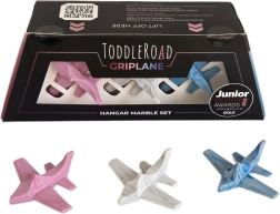 Set Hangar Marble idealan je dodatak setu Zračna luka i donosi djeci radost slobodne, sigurne i maštovite igre. Tri silikonska aviona u nježnim pastelnim bojama s efektnim mramoriranjem odlično leže u dječjoj ruci te zahvaljujući ugodnom materijalu potiču osjetilnu percepciju.