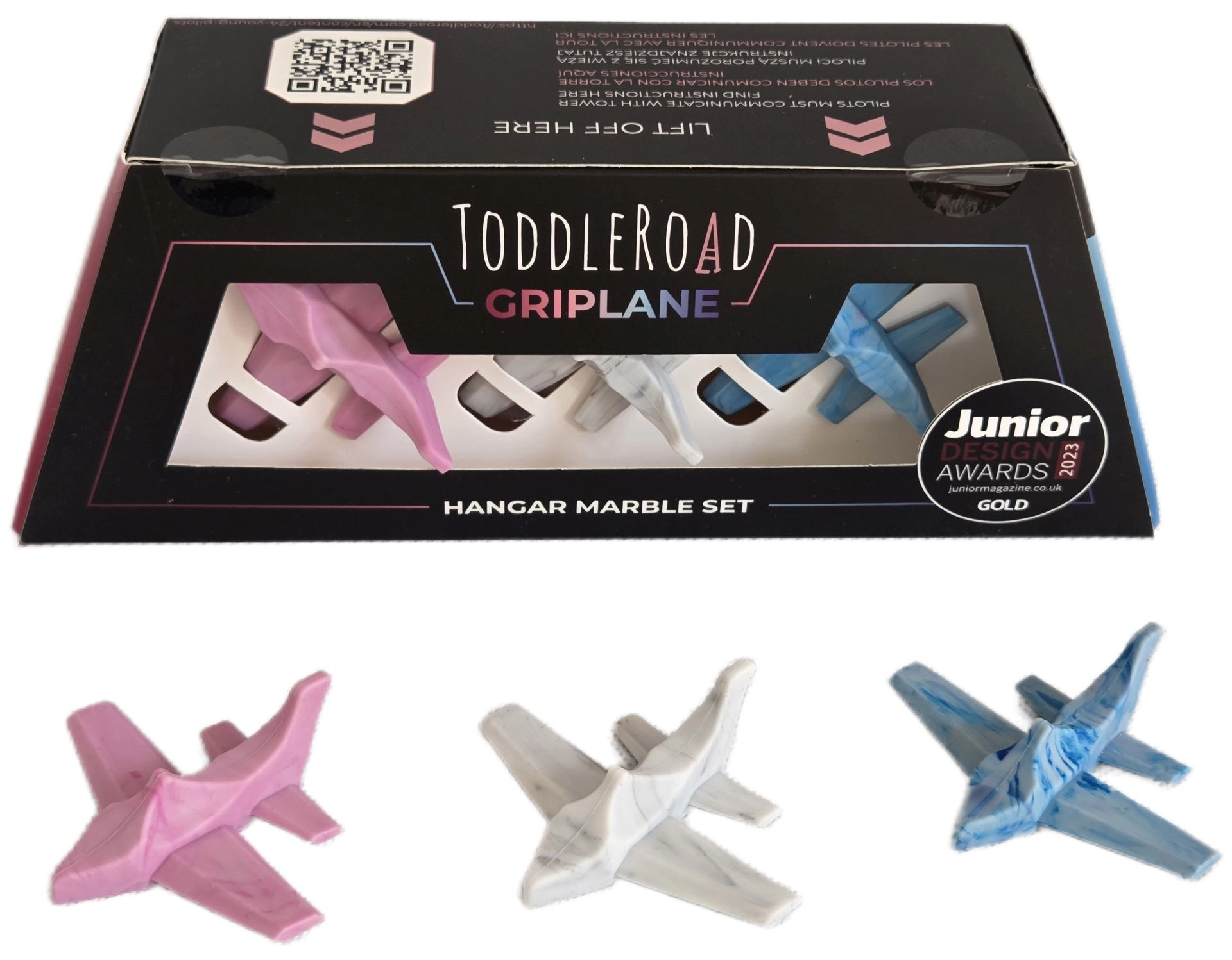 Proširite svoju zračnu luku setom Toddleroad Hangar Marble s 3 ergonomska silikonska aviona u pastelnim nijansama s mramornim uzorkom i funkcionalnom kutijom hangara s tiskom. Igračka je sigurna od 1. godine, potiče finu motoriku, koordinaciju oko–ruka i maštu. Dijelovi su od silicona za prehranu i mogu se prati u perilici posuđa do 50 °C.