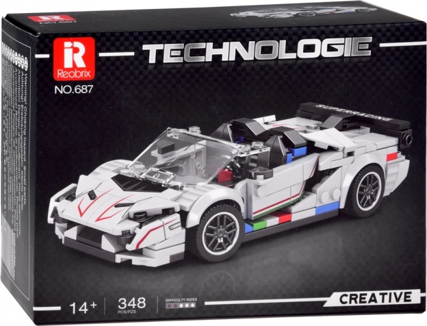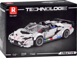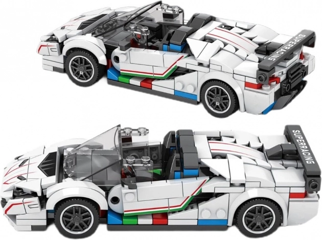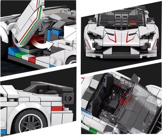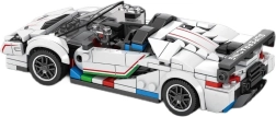 Ova tehnička građevna set-konstrukcija razveselit će svakog entuzijasta brzih automobila i preciznih konstrukcija. Bijeli kabrio s agresivnim linijama i izraženim stražnjim krilom djeluje poput pravog supersportaša – savršen za vitrinu ili policu kolekcionara.
