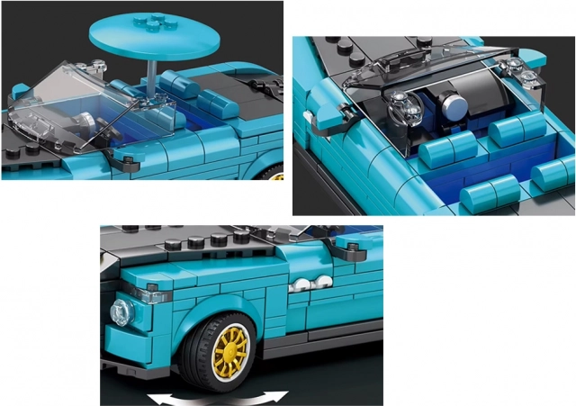 Sastavite dojmljiv model koji vjerno dočarava klasične linije i elegantan izgled automobila prošlih vremena. Plavi retro kabriolet sa zlatnim kotačima odlično izgleda tijekom slaganja i kao gotova dekoracija za sobu ili dio kolekcije.