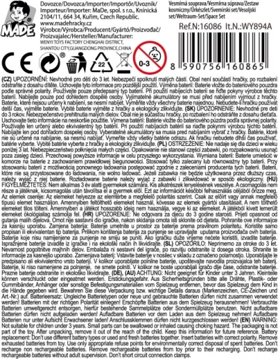 Igračka je izrađena od kvalitetne plastike, napaja se baterijama AG13 (uključene u pakiranju) i isporučuje se u praktičnom boxu. Odlično razvija maštu, finu motoriku i tematsku igru uloga.