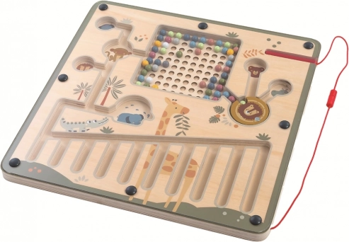 Otkrijte zabavnu i edukativnu igračku za djecu od 3 godine – magnetičnu igraću ploču s motivom safarija. Zahvaljujući priloženoj magnetskoj olovci djeca premještaju šarene kuglice u sigurnom labirintu i tako vježbaju finu motoriku, koordinaciju ruka–oko, logičko razmišljanje i razvrstavanje prema količini. Prozirni pokrov osigurava da se kuglice ne rasipaju, pa je igra sigurna i bez nereda.