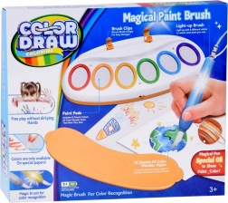 Čarobni kist Color & Draw LED zamjenjuje klasične boje i vodu sigurnim svjetlom. Dijete odabere boju na bazi s obojenim podlogama i prenese je na priložene posebne papire – boje se nakon trenutka razbuktaju i slika oživi. Kreativno, čisto i intuitivno slikanje potiče maštu i finu motoriku.