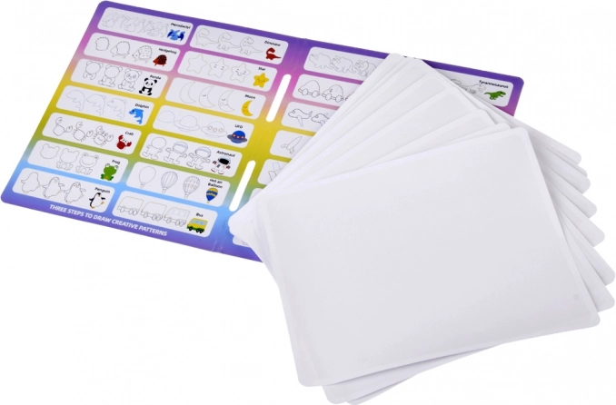 Sastavni dio je priloženi stylus/kist, kompaktna baza za jednostavno odlaganje i set bijelih kartica za ponavljano vježbanje crtanja prema jednostavnim predlošcima.