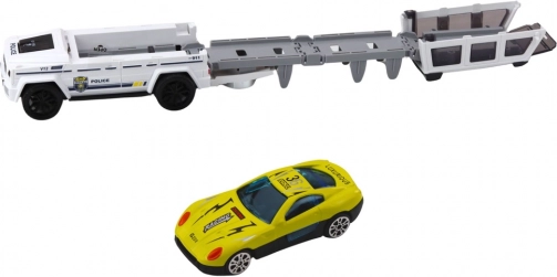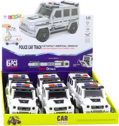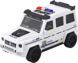 Zabavni policijski terenski automobil u bijeloj boji donosi djeci akciju i maštu. Zahvaljujući poticaju trenjem kreće naprijed već nakon laganog gurkanja, a za realističnu atmosferu brinu svjetlosni i zvučni efekti. Nakon otvaranja vozilo se pretvara u stazu s katapultom iz koje se može izbaciti mali autić – dupla doza zabave u jednom.